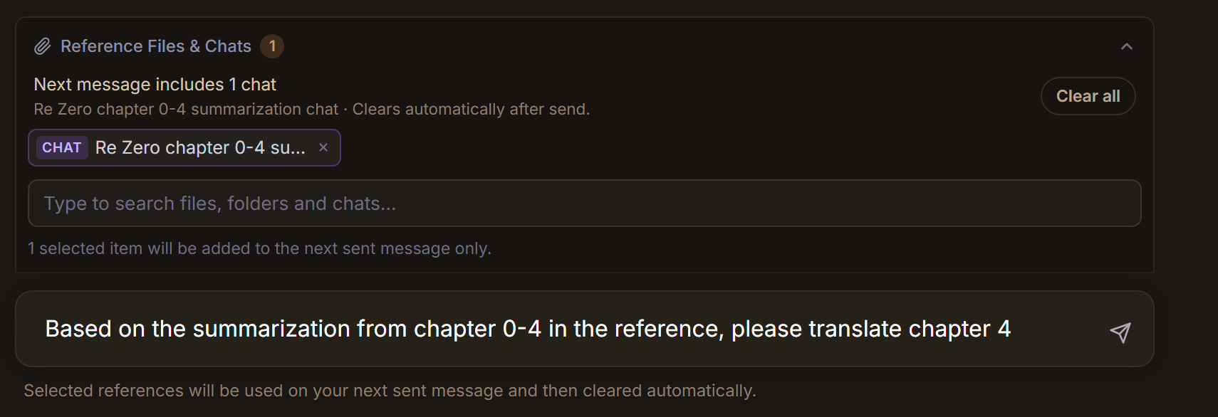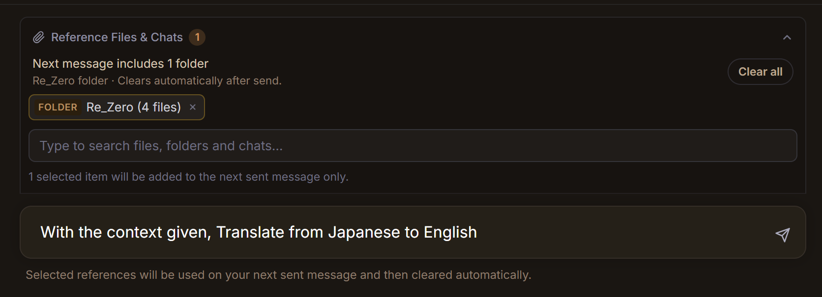 - Put 100 files inside folder as context for writing, translation, etc